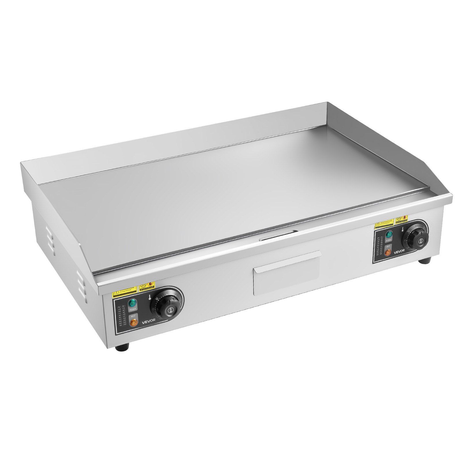 VEVOR Commercial Electric Griddle, 28.54 x 15.75 in, 2800W, 122-570°F Adjustable Temp Control, Stainless Steel Countertop Flat Top Grill with 2 Spatulas, 2 Brushes, and 4 Foot Pads, for Steak
