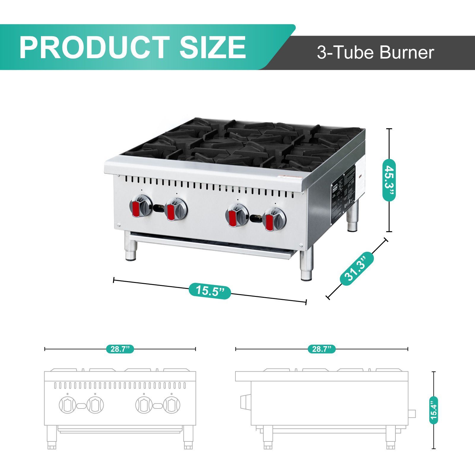 3.Standing pilot with each burner for easy ignition,Adjustable manual gas controls provide easy and safe operations.