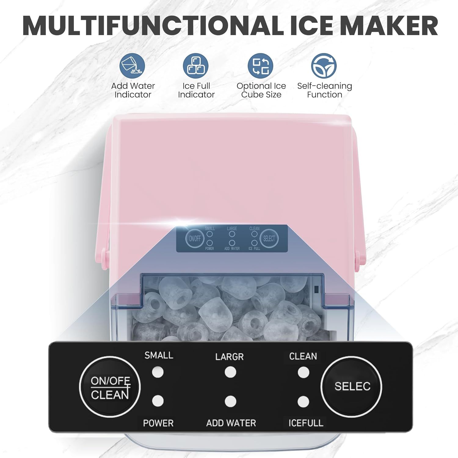Built-in automatic cleaning function. Press the power button for 5 seconds to start. Keep the machine clean and the ice cubes fresh. Combined with detachable ice trays and ice scoop, it is convenient to take and clean, making daily maintenance more convenient.