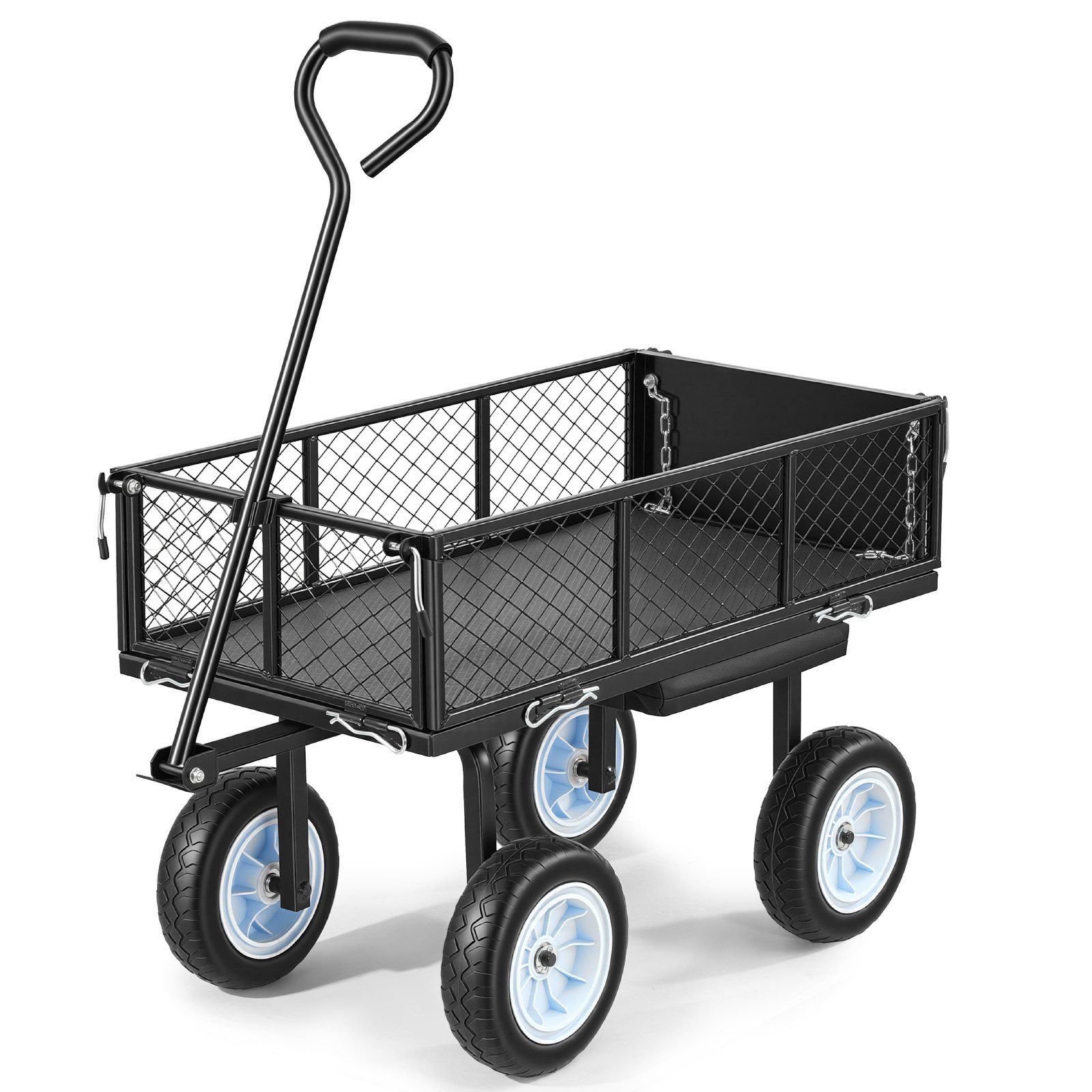4.Multiple Use Modes: Designed for flexibility, this garden cart on wheels easily converts between a fenced cart and a flatbed cart. Detachable side panels let you carry oversized items with ease, turning it into a flatbed trailer when needed