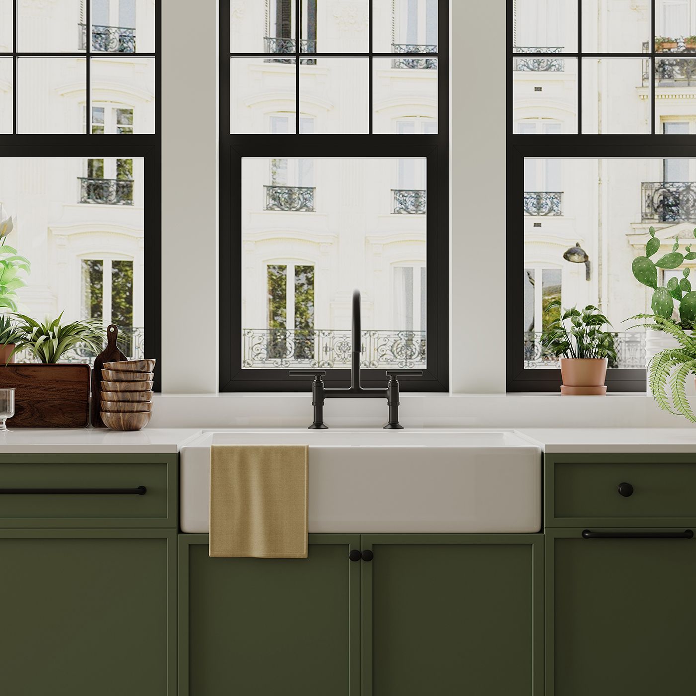 3.2-handles kitchen faucet: bridge kitchen faucet features 2-handle design and comes with supply hoses (cold and hot), which can help control water volume and temperature precisely, a high arc 360° rotating faucet is also perfect for a double sink