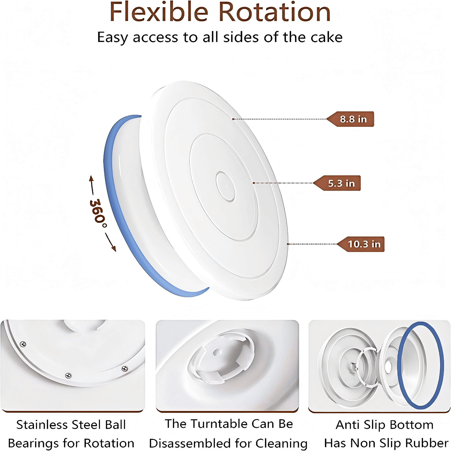 The set includes 54 numbered icing tips and 4 Russian tips, paired with the included pattern guide manual, so even beginners can quickly master the techniques for creating different patterns. The 360° rotating cake turntable ensures smooth and even frosting and decorating. Paired with flower nails, you can easily create three-dimensional rose and other floral decorations; 9 fondant carving pens help you create delicate textures, making your cakes look stunning.