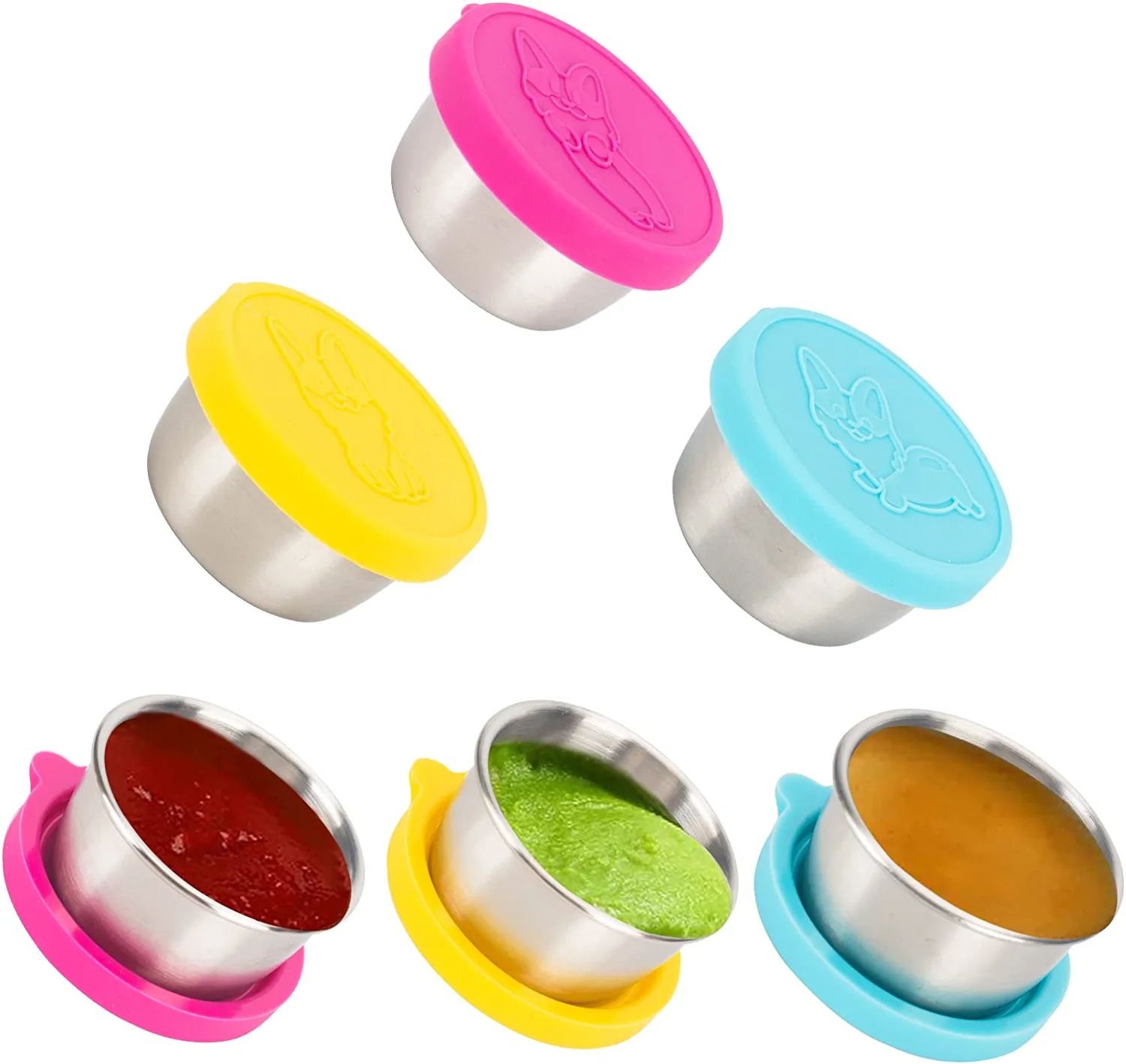 Home > Salad Dressing Containers To Go; 6x1.5 oz Stainless Steel Food Containers with Lids; Small Silicone Dipping Sauce Cups Toddler Snack Containers Leak