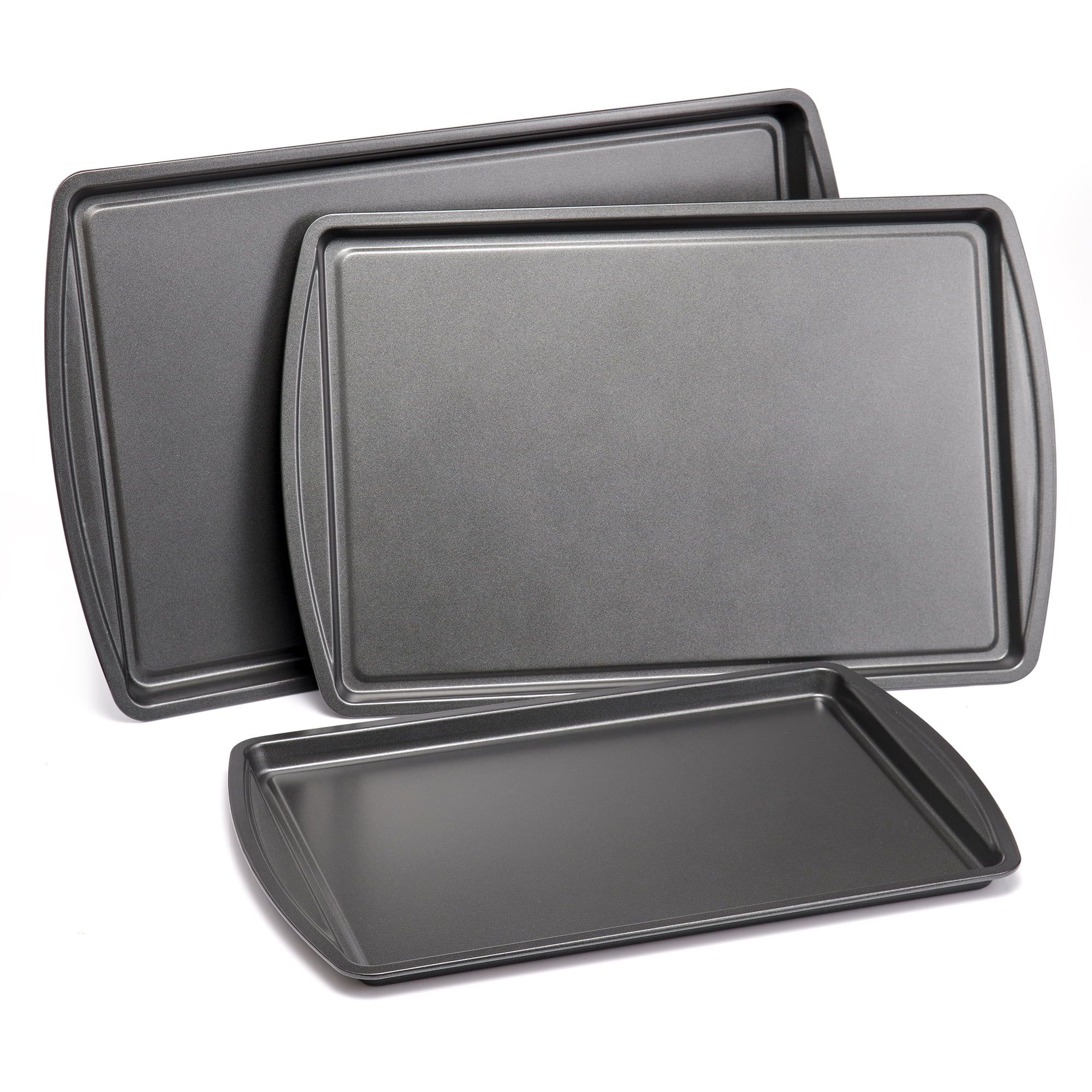 3pc Carbon Steel Nonstick Cookie Sheet Bakeware Set, 11" x 17", 10" x 15", 9" x 13", Gray 3pc Carbon Steel Nonstick Cookie Sheet Bakeware Set, 11" x 17", 10" x 15", 9" x 13", Gray 3pc Carbon Steel Nonstick Cookie Sheet Bakeware Set, 11" x 17", 10" x 15", 9" x 13", Gray