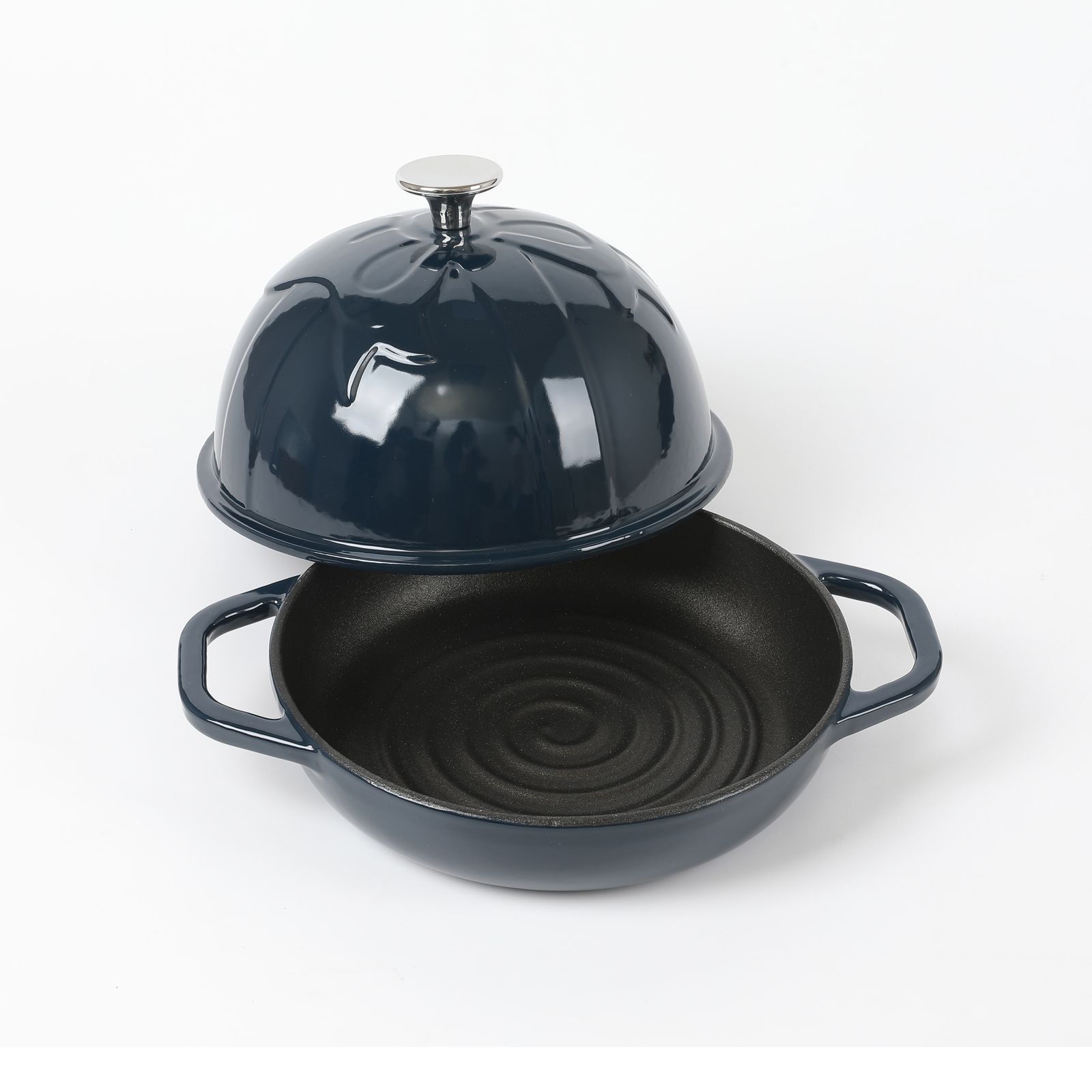 Tired of scrubbing and scraping to remove crusty dried-on food from your cast iron cookware? The inner wall of the base is coated with non-stick enamel, which seals the cast iron to keep foods from sticking and crusting. Due to its ultra-smooth, virtually nonstick cooking surface, the HAWOK bread cloche is effortless to clean. Its tight-fitting lid effectively seals in moisture and flavor and creates a thick, crispy crust and a light, airy inside. The lid features stainless steel knobs that are safe at all oven temperatures, making it easy to move. The low-profile base has raised ridges for even browning and marks the loaf with the lollipop. It can also be used as a skillet. In addition, you will receive two ergonomic ring handles that provide a comfortable, safe grip and ease of movement from kitchen to table. The cast iron delivers superior and even heats distribution. The glossy enamel is chip, crack, and stain-resistant. This enamel cookware comes in a variety of gorgeous colors and styles to suit any kitchen. This HAWOK bread cloche is the perfect present for weddings, housewarmings, birthdays, holidays, and more.