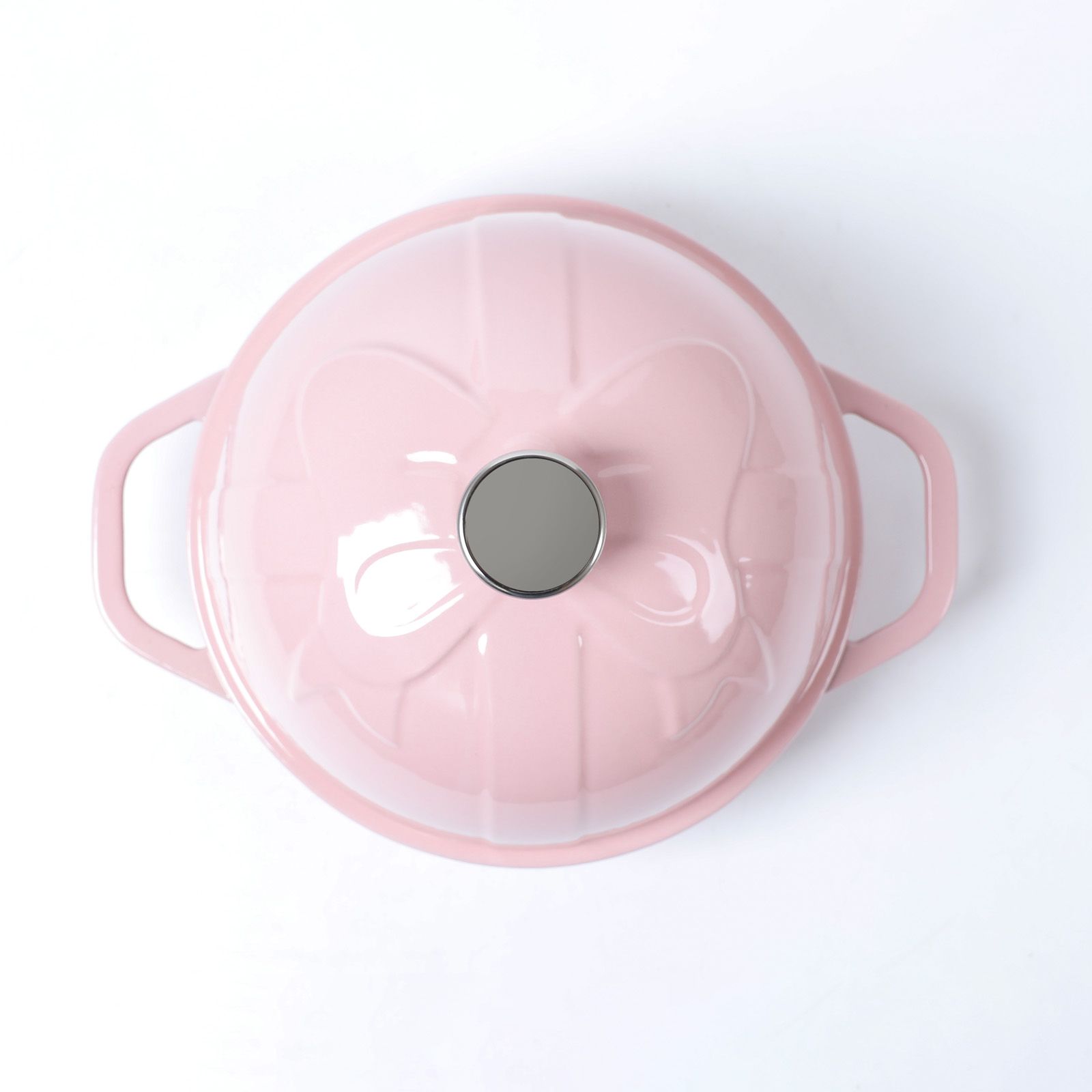5.The top of the dome lid has a large bow. The lively design adds some color to your kitchen. Tight-fitting domed lid is specially designed to trap and circulate steam to create a crisp crust, maximum rise and excellent flavor.