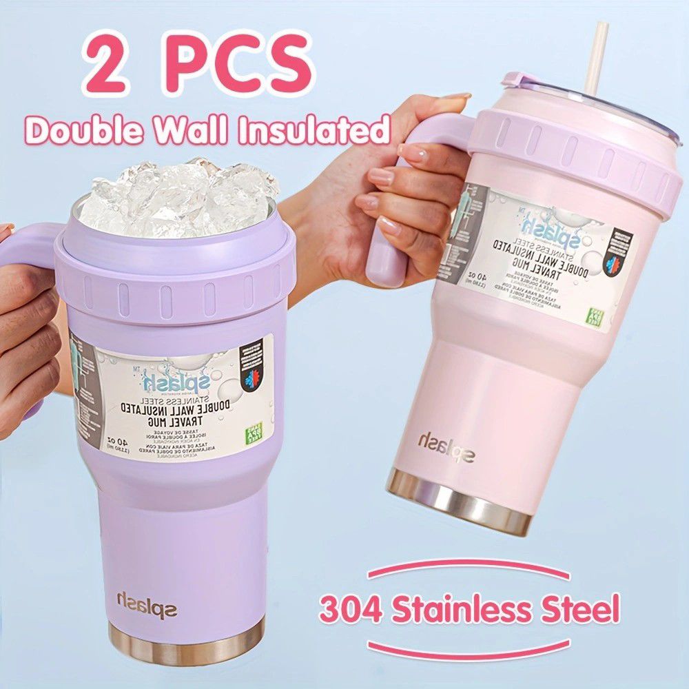 Steel Insulated Mugs i Break Reusable For Hot And Cold Drinks,Ldeal For Water,lced Tea,Coffee,Car Mugs Tumblers With Handle And Straw