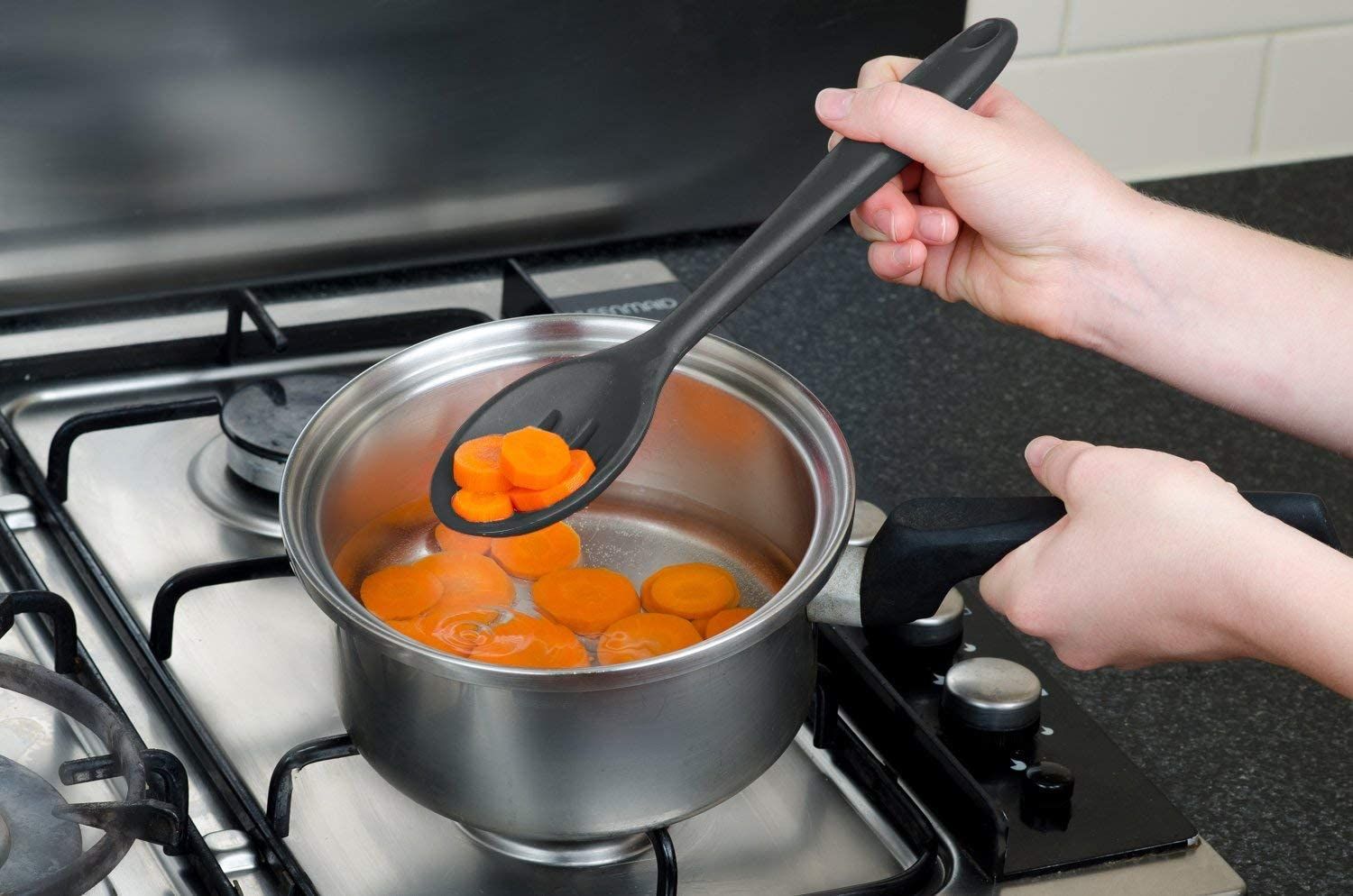 4.This superior-quality spoon has a soft-grip handle for controlled, comfortable use, and a nylon head that's safe for non-stick pans.