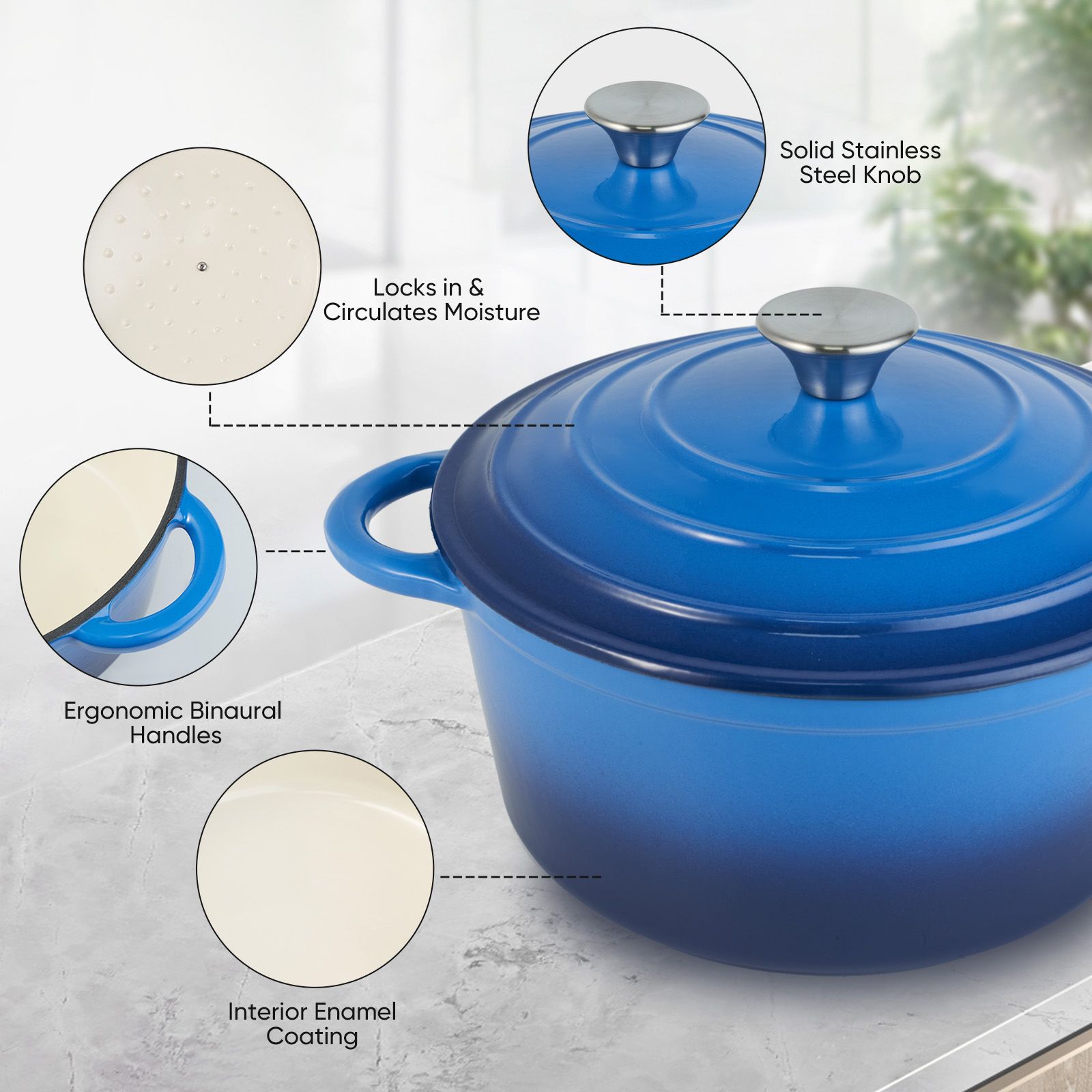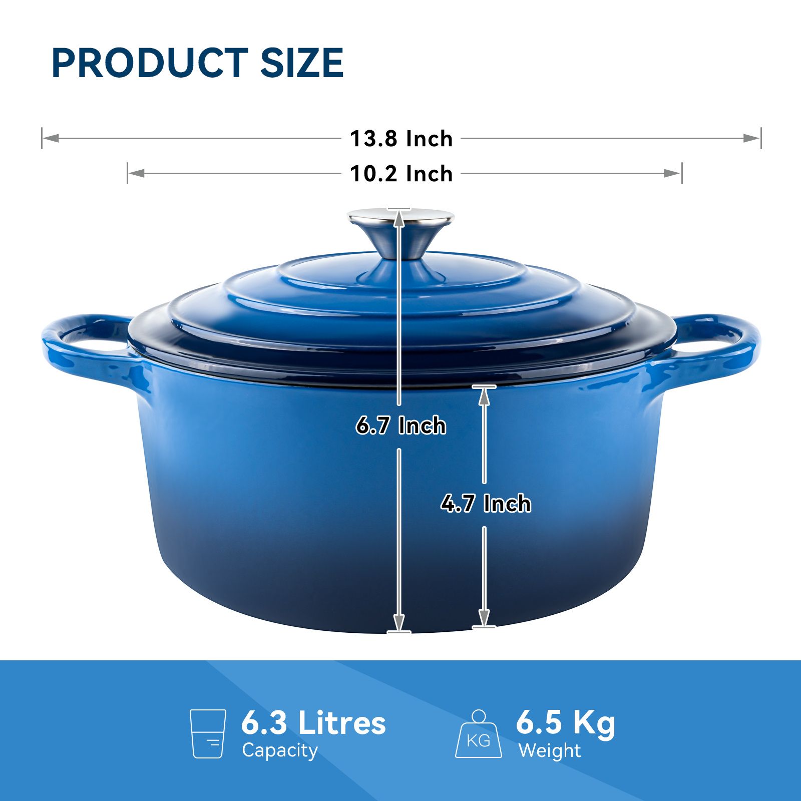 ��LARGE 6 QT CAPACITY:Our cast iron dutch oven can be used for multiple cooking methods such a cooking, baking, stewing etc.With this Large capacity enameled cast iron, can meet all the needs of family gatherings.The highest temperature tolerance is as high as 500°F.