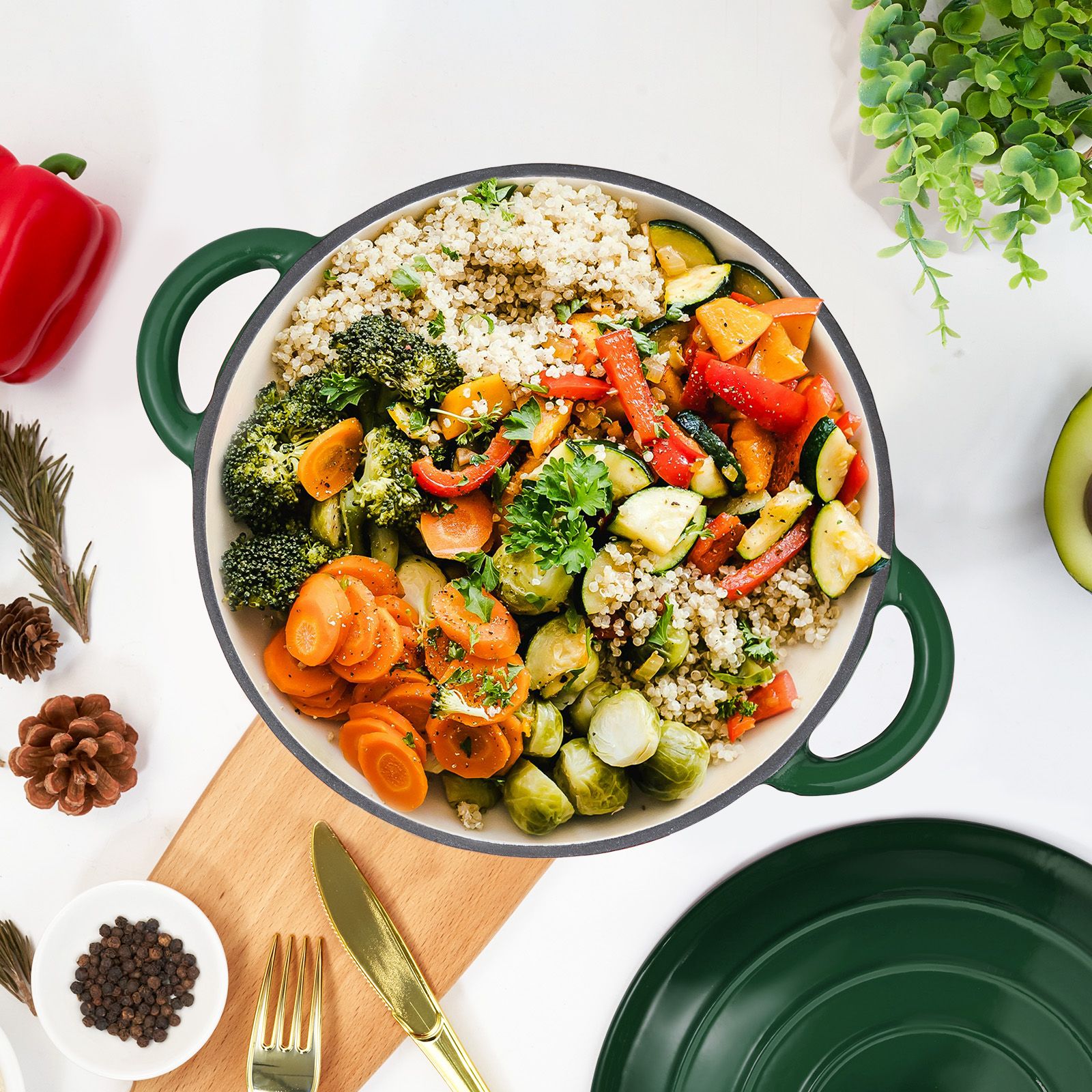 AMAZING CAPACITY: The large capacity of our Dutch ovens meets many culinary needs such as cooking, baking, stewing and more. The maximum temperature resistance is 500°F, ensuring that the iron pan can still maintain stable performance in high temperature cooking environment.